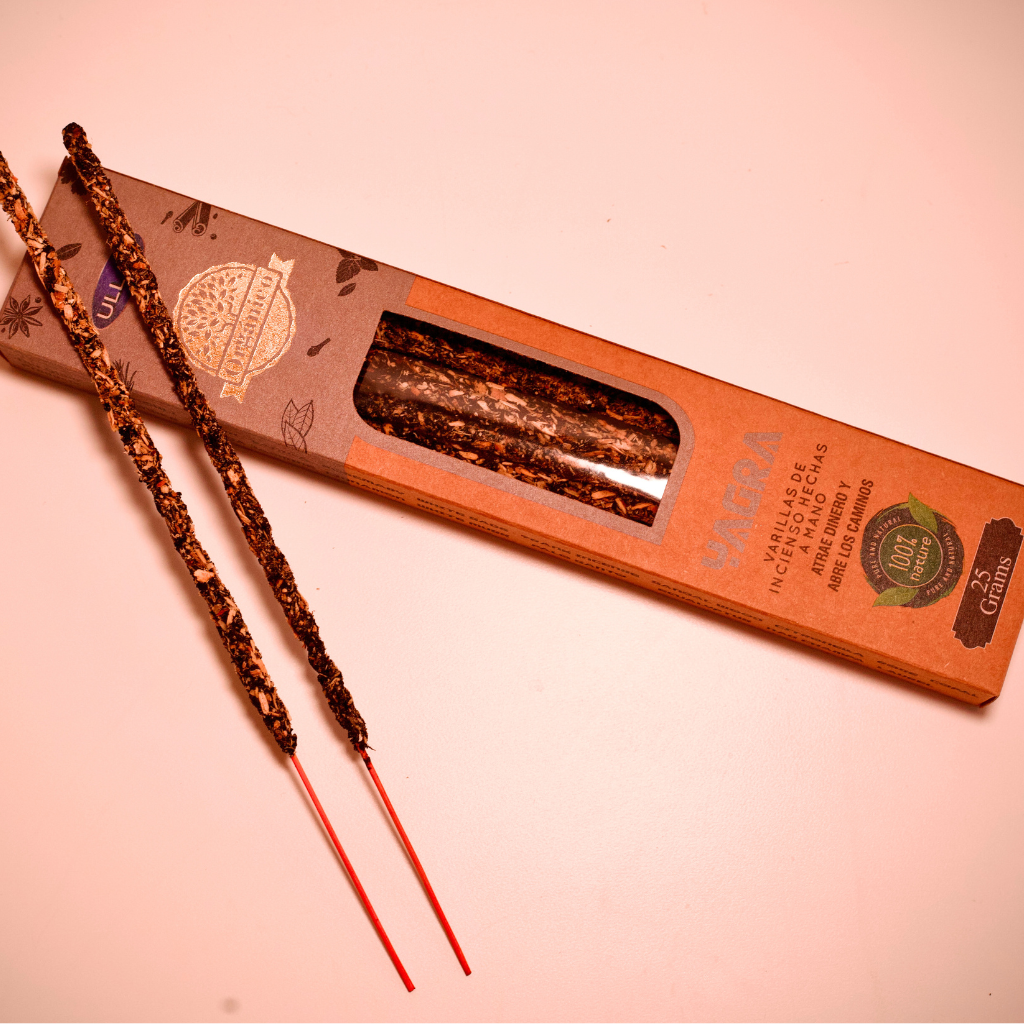 Las varillas de Incienso Natural Yagra Ullas están elaboradas a mano con ingredientes 100% orgánicos, sin aditivos ni químicos, lo que garantiza una combustión limpia, duradera y respetuosa con tu espacio y tu energía.